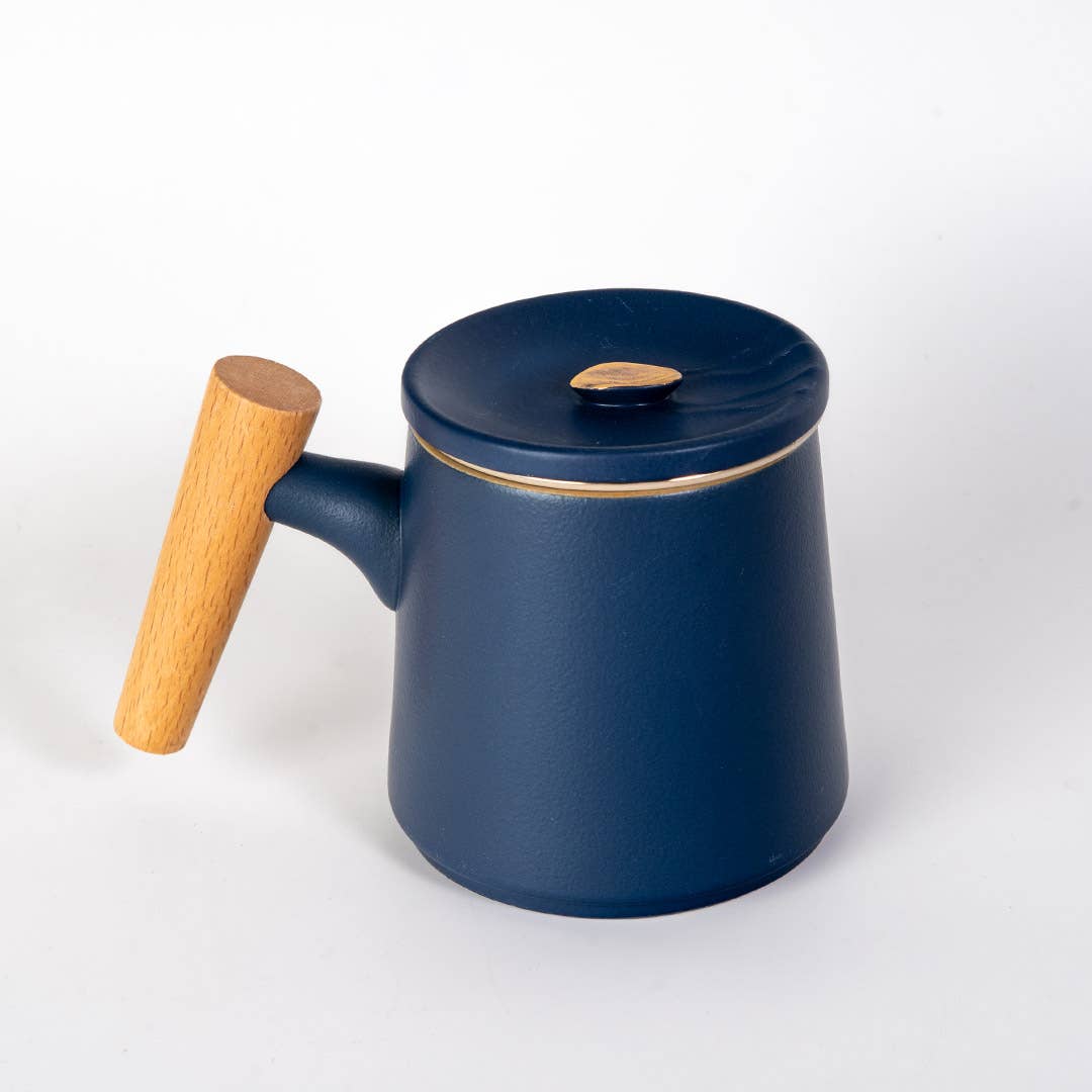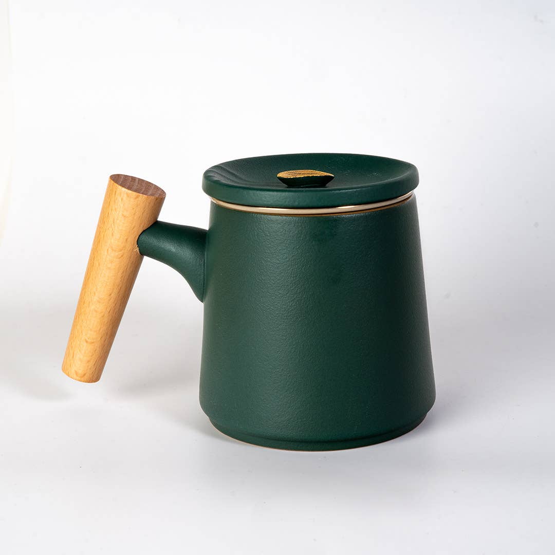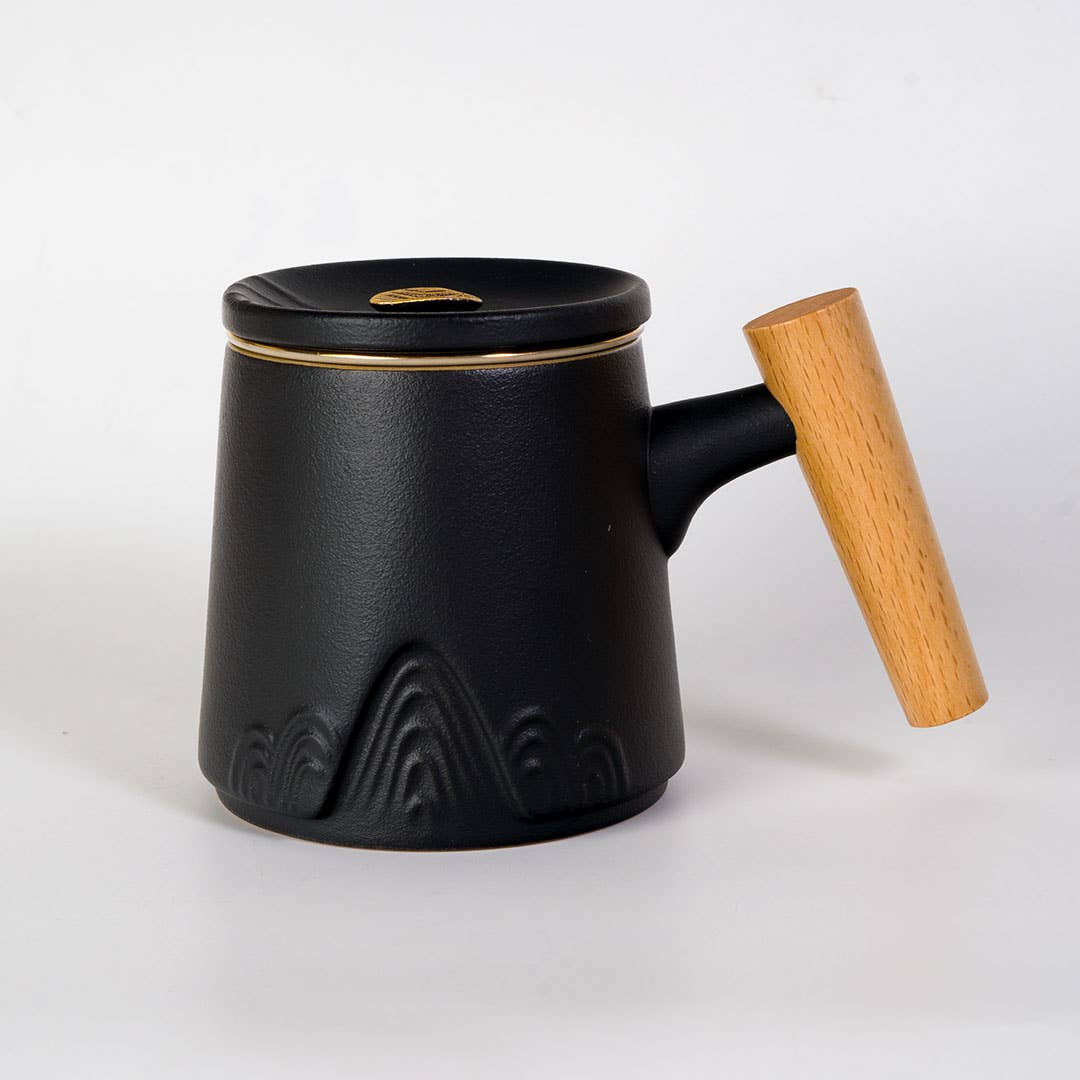 The wooden handle stays cool and adds a natural touch to the bold, minimalist design. Whether you're at your desk or winding down at home, this mug makes single-serve tea brewing effortless and elegant.