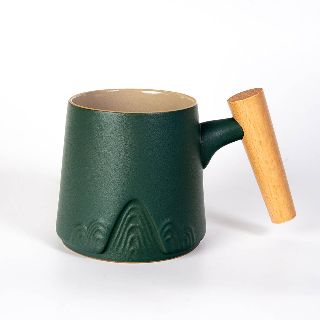 Steep your tea in style with the Mountain Mist Mug, a modern and beautifully crafted tea mug designed for loose-leaf lovers. Featuring a sleek matte porcelain finish and natural wood handle, this mug includes a matching porcelain strainer and lid for a clean, simple steep—no extra tools required.