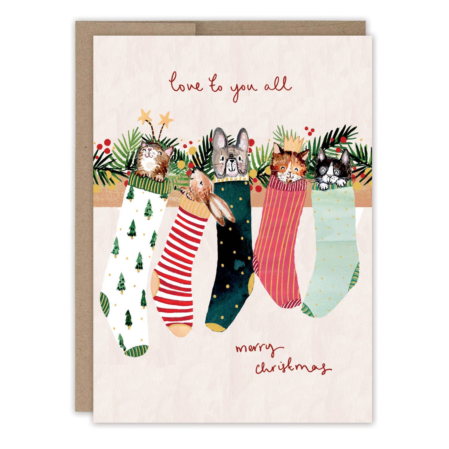 Greeting Card - Animals In Stockings Christmas Holiday Card