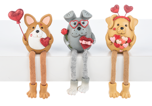 Transform your space with our delightful and charming Shelf Sitter - Cats and Dogs In Love with dangle legs. Whether at home or in the office, these adorable companions will enhance your decor. Each Sold Separately