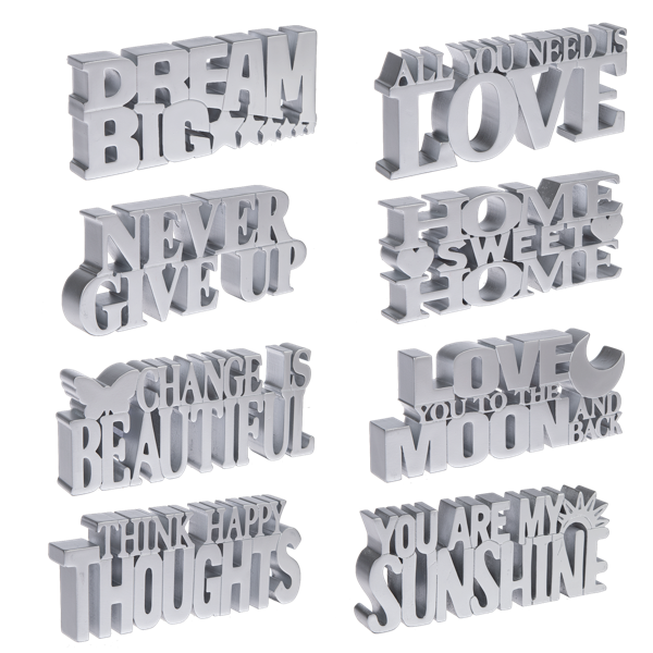 Brighten your day and your space with our Happy Thoughts Shelf-sitters. These charming polyresin decorations, each measuring 6 1/8" W x 2 1/2" H, are designed to inspire with uplifting quotes like "Never Give Up," "You Are My Sunshine," and "Think Happy Thoughts." Perfect for displaying on a desk, shelf, or mantle, these shelf sitters are a delightful reminder to stay positive. Each one is sold separately, making them an ideal gift to spread joy and encouragement to others or to keep as a personal pick-me-up