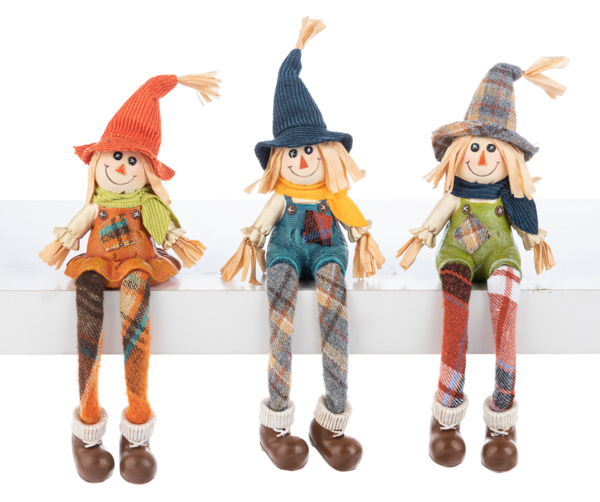 Add a touch of rustic charm to your seasonal decor with these adorable Scarecrow Shelf Sitters! Standing 7 inches tall, each scarecrow features a polyresin body and playful plaid dangle legs,  Dressed in vibrant fall colors, these scarecrows come in three unique outfits—orange, blue, and green.