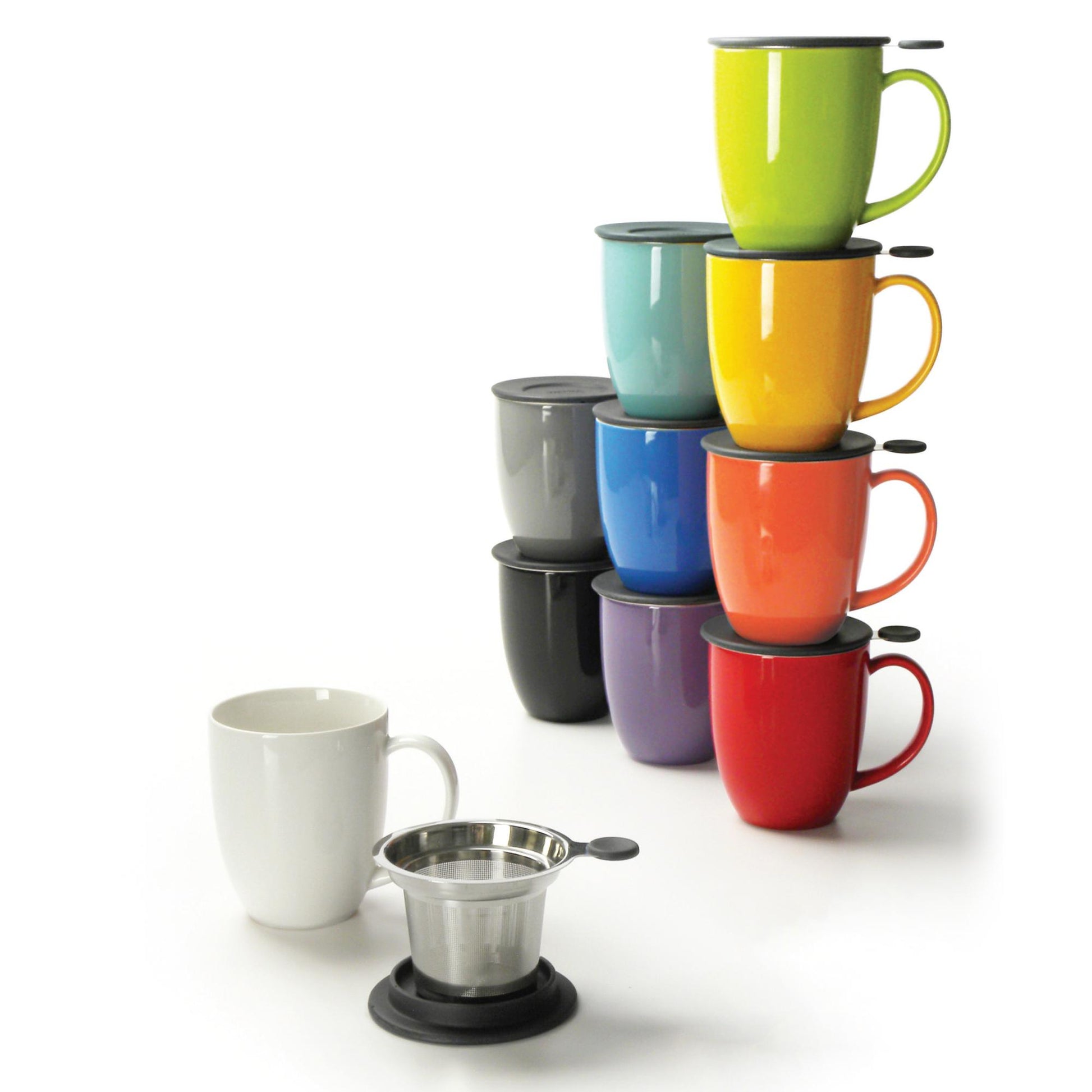 The Uni Brew-in Mug is perfect for steeping up your favorite loose leaf tea. Includes an extra fine stainless steel infuser and steamer lid/coaster. Available in 10 colors.